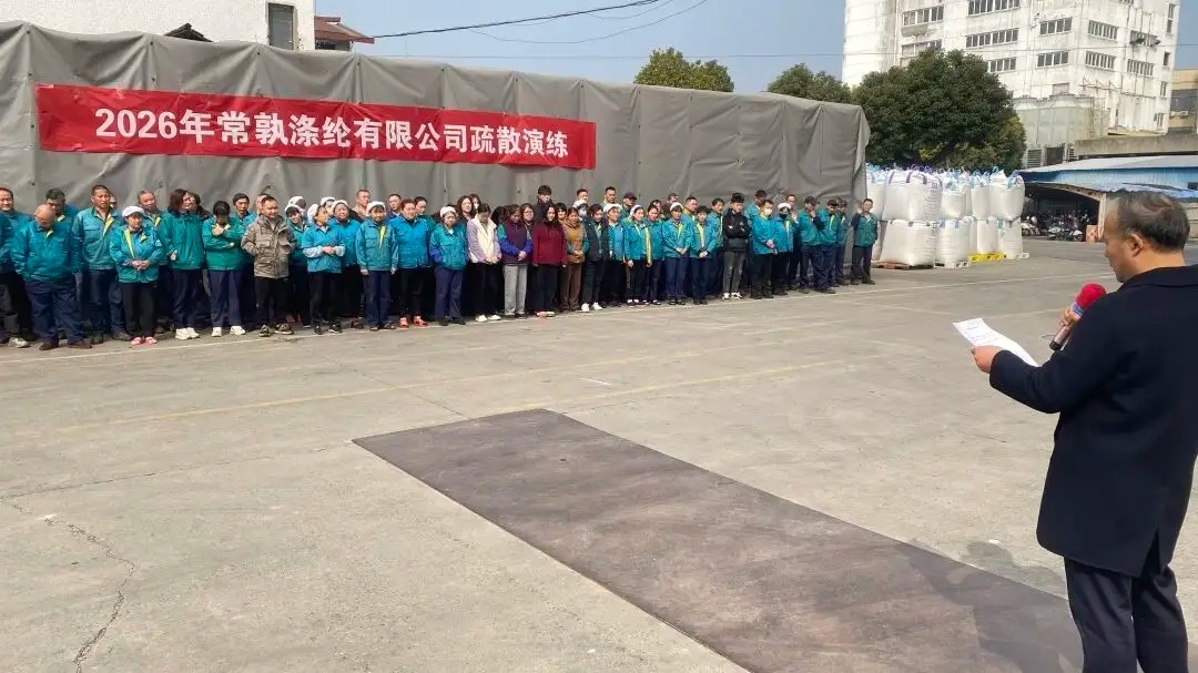 Dina raraga ngalaksanakeun sarat relevan tina Hukum Produksi Kasalametan jeung Bor Darurat pikeun Darurat, sarta pikeun ngaronjatkeun évakuasi jeung kamampuhan ngewa karyawan dina acara kahuruan, Changshu Polyester Co., Ltd. diayakeun hiji bor évakuasi darurat on Pébruari 11th. Divisi Poliéster sareng Divisi Lida ngalaksanakeun bor sacara teratur dina jam 12:00 sareng 13:00 dina dinten anu sami, kalayan jumlah karyawan 357 tina dua divisi anu milu dina bor.